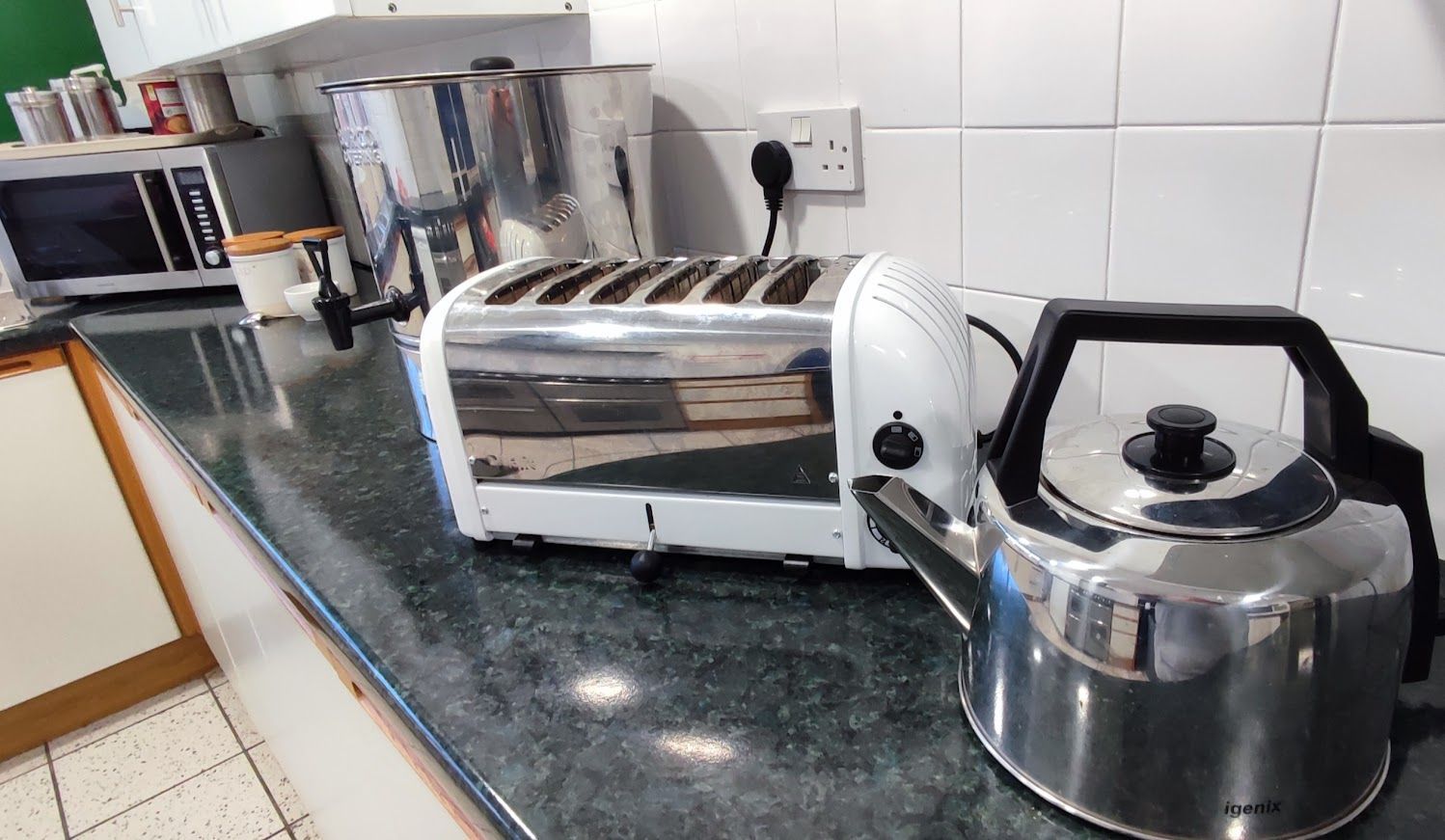 A well equipped kitchen with a range cooker, fridge, microwave and loads of crockery and cutlery for your large or small event.